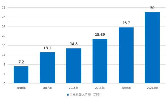 工業(yè)機(jī)器人控制器市場(chǎng)空間巨大,一般來(lái)講,按照一臺(tái)工業(yè)機(jī)器人配備一個(gè)控制器的標(biāo)準(zhǔn),2020年工業(yè)機(jī)器人控制器需求量在23.7萬(wàn)個(gè)左右,從下圖可以看出,我國(guó)工業(yè)機(jī)器人產(chǎn)量保持持續(xù)增長(zhǎng)勢(shì)頭,2021年上半年已經(jīng)產(chǎn)出工業(yè)機(jī)器人17.36萬(wàn)套,同比增長(zhǎng)61%,全年有望實(shí)現(xiàn)30萬(wàn)套產(chǎn)出規(guī)模。而從我國(guó)工業(yè)機(jī)器人控制器國(guó)產(chǎn)率不足20%的現(xiàn)狀來(lái)看,未來(lái)工業(yè)機(jī)器人控制器國(guó)產(chǎn)替代還有很大空間。