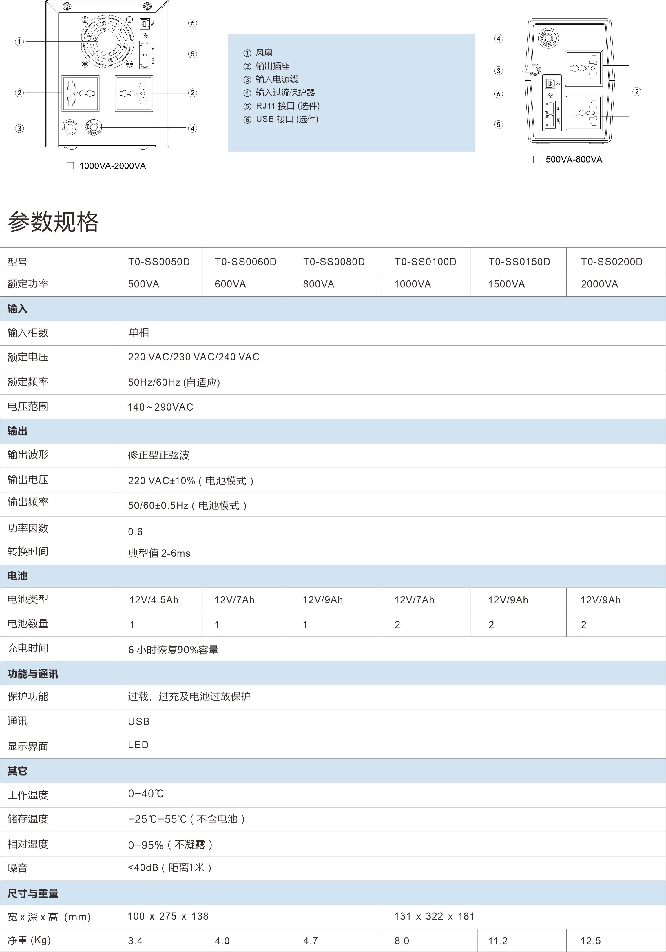 5. 支持電池冷開機功能; 6. 電池后備修正正弦波輸出。