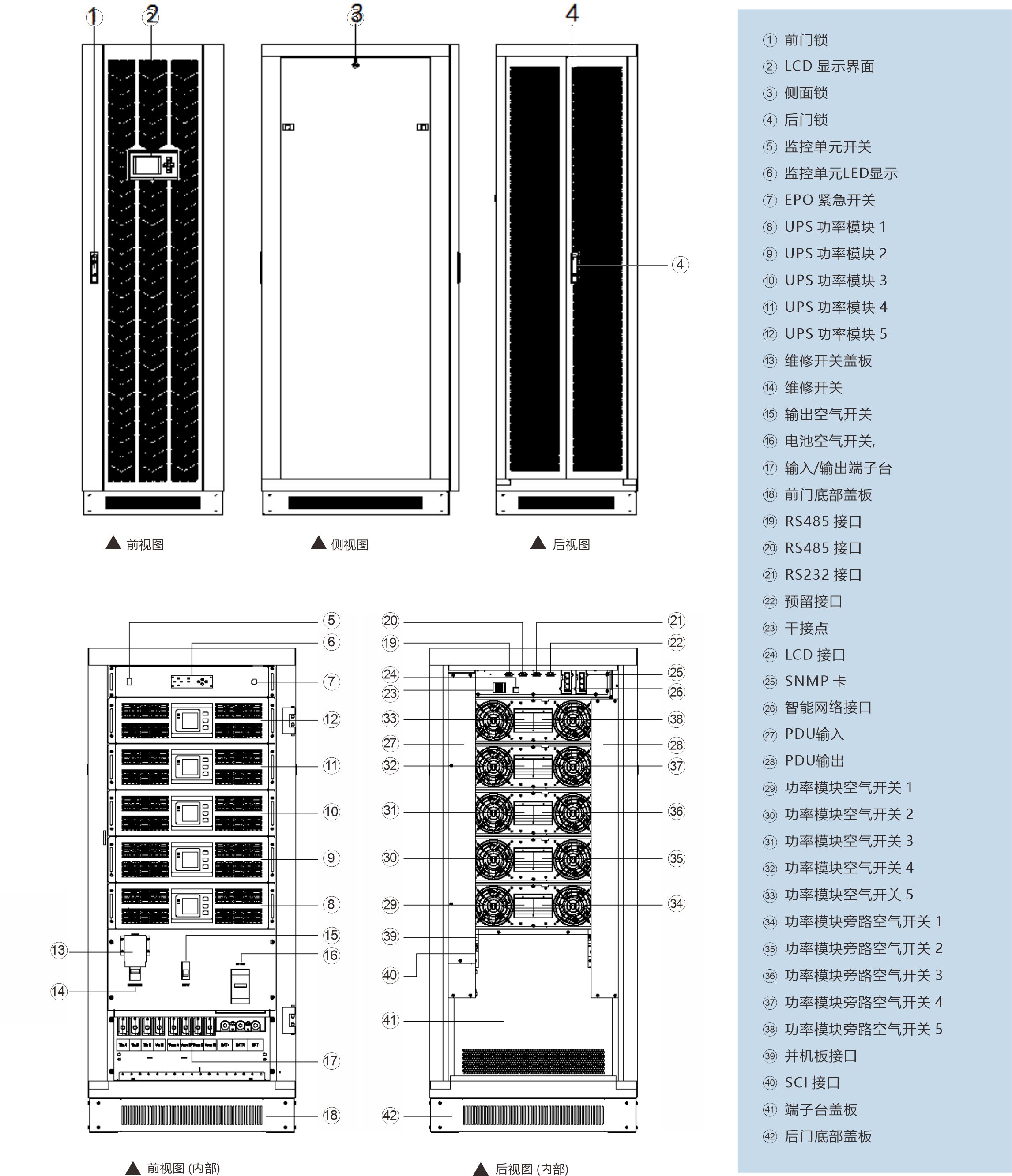 2. 高功率密度設計, 單模塊容量30KVA,模塊高度均為3U模塊, 可以在線加入、在線拔出,實現(xiàn)“零”檢修時間;