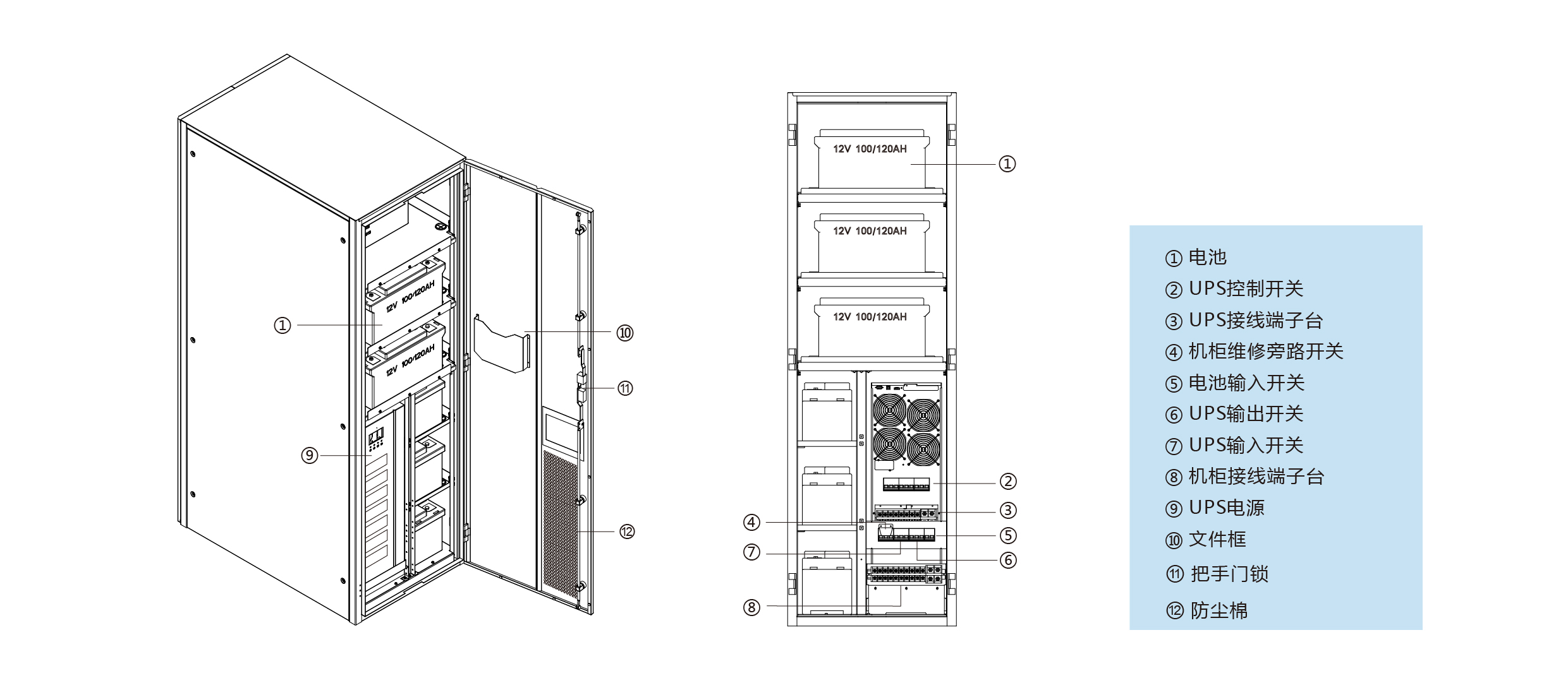 7. 機柜標配旁路維修開關,安全方便維護;