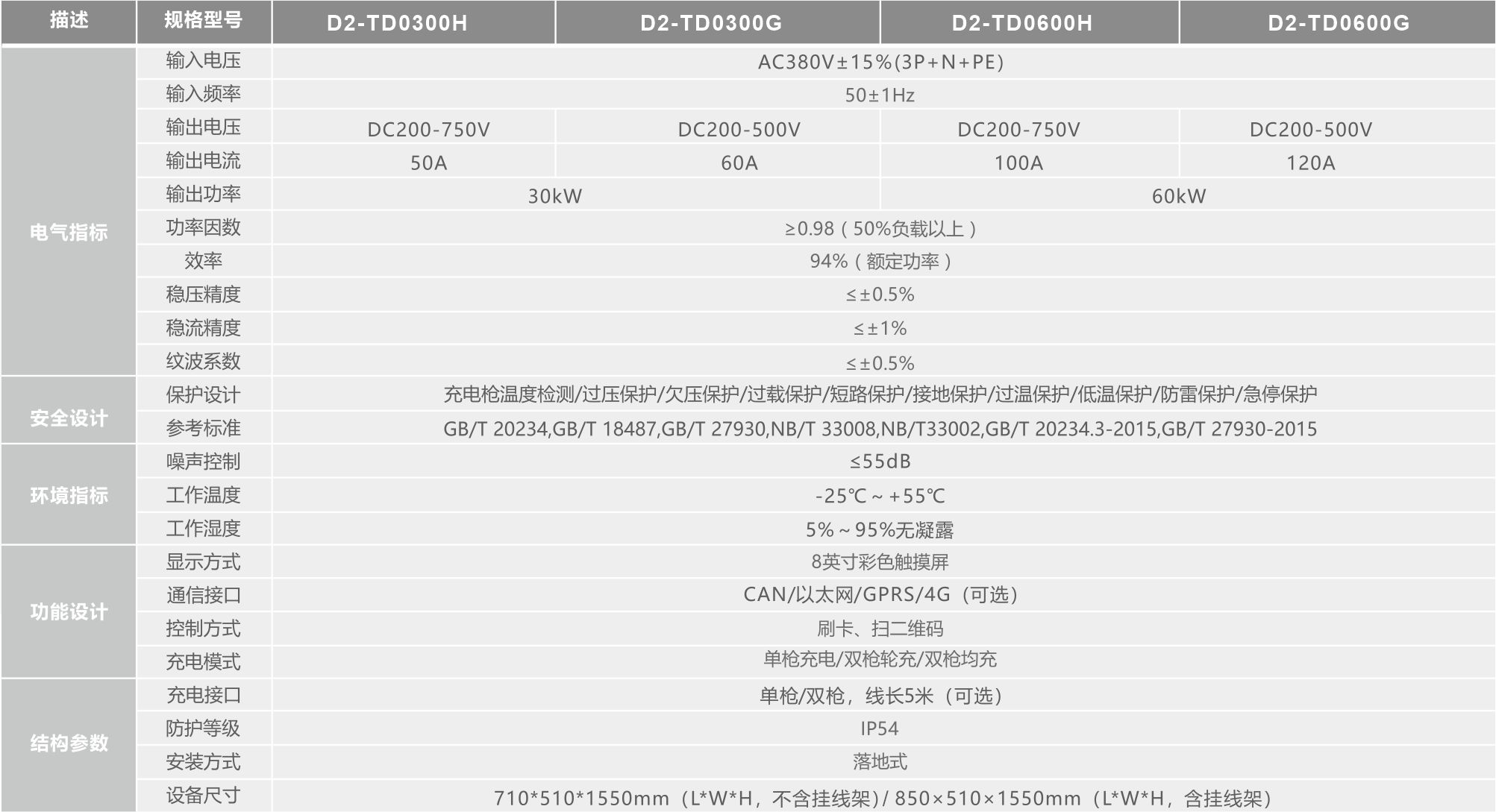 一體式直流樁 (30-60kW)一體式直流電樁適用于城市專用充電站(公交車、出租車、環(huán)衛(wèi)車、物流車、分時租賃電動車等)、城市公共充電站(面向社會車輛)、城際高速公路充電站等需要直流快速充電的場合。 產(chǎn)品集功率變換、充電控制、計量計費等于一體,功率配置靈活,安裝方便,性能穩(wěn)定。產(chǎn)品系列涵蓋單槍輸出、雙槍輪充和均充、功率分配輸出等多種模式,是快速充電的理想設備。