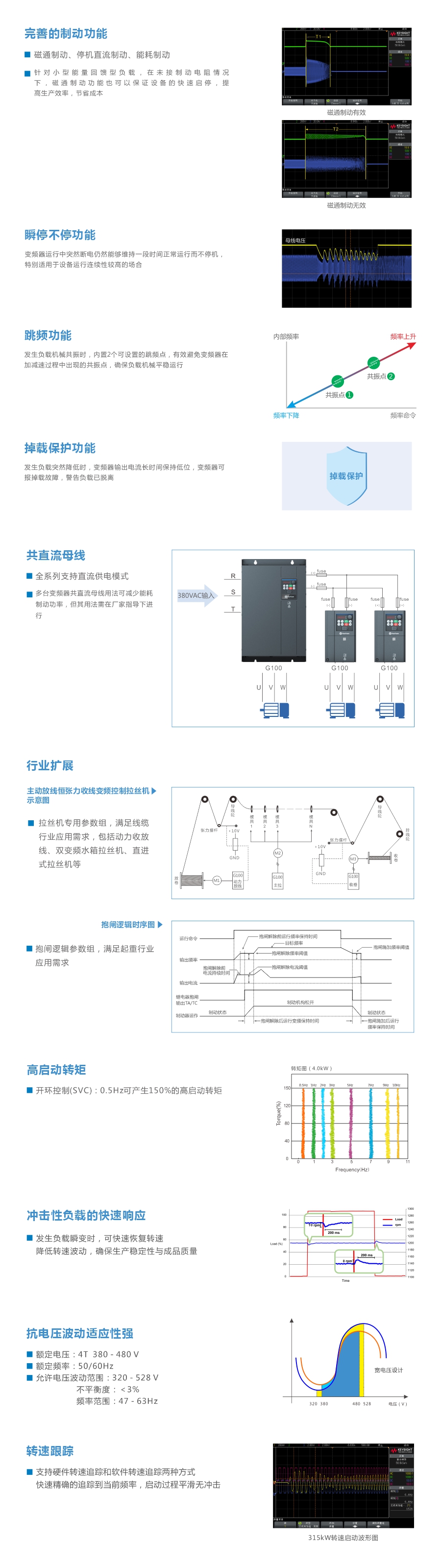 G100系列通用開環(huán)矢量變頻器G100系列通用開環(huán)矢量變頻器為華遠電氣開發(fā)的新一代通用型產(chǎn)品,造型采用直線條黃金分割,外觀硬朗、科技感十足。全系列功率段涵蓋4kW -800kW ,支持VF控制、開環(huán)矢量控制,主要面向國內(nèi)市場的離心機、擠出機、工業(yè)洗衣機、拉絲機等設(shè)備的配套和紡織、注塑、化纖、水泥、陶瓷等生產(chǎn)線的改造需求,以及石化、煉油、熱電、供水、供熱等行業(yè)的風機、泵類設(shè)備的大型項目需求。