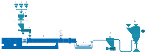 我們一般稱由以上各部分組成的擠出裝置為擠出機(jī)組。