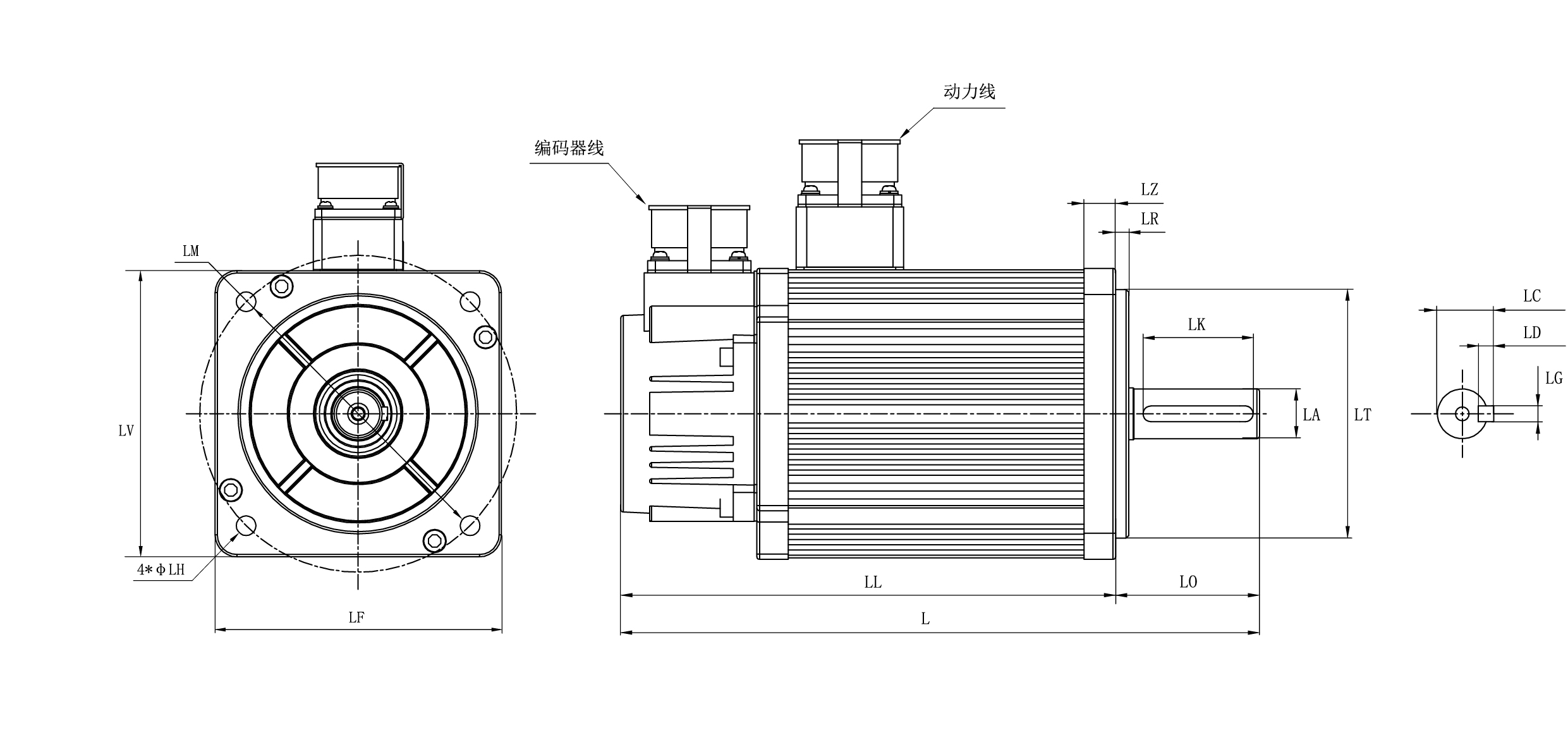 功率 電機(jī)型號 LF L LL LO LZ LR LA LT LM LH LV LK LC LD LG 1000W HSM1-130M2225210D5 130 223 166 57 14 5 22 110 145 9 139.5 42 24.5 6 6 1300W HSM1-130M2225213D5 130 228 171 57 14 5 22 110 145 9 139.5 42 24.5 6 6 1500W HSM1-130M2225215D5 130 236 179 57 14 5 22 110 145 9 139.5 42 24.5 6 6 1500W HSM1-130H2215215D5 130 270 213 57 14 5 22 110 145 9 139.5 42 24.5 6 6 2000W HSM1-130M2225220D5 130 249 192 57 14 5 22 110 145 9 139.5 42 24.5 6 6 2300W HSM1-130H2225223D5 130 298 241 57 14 5 22 110 145 9 139.5 42 24.5 6 6 2600W HSM1-130M2225226D5 130 266 209 57 14 5 22 110 145 9 139.5 42 24.5 6 6 3800W HSM1-130M3825238D5 130 288 231 57 14 5 22 110 145 9 139.5 42 24.5 6 6