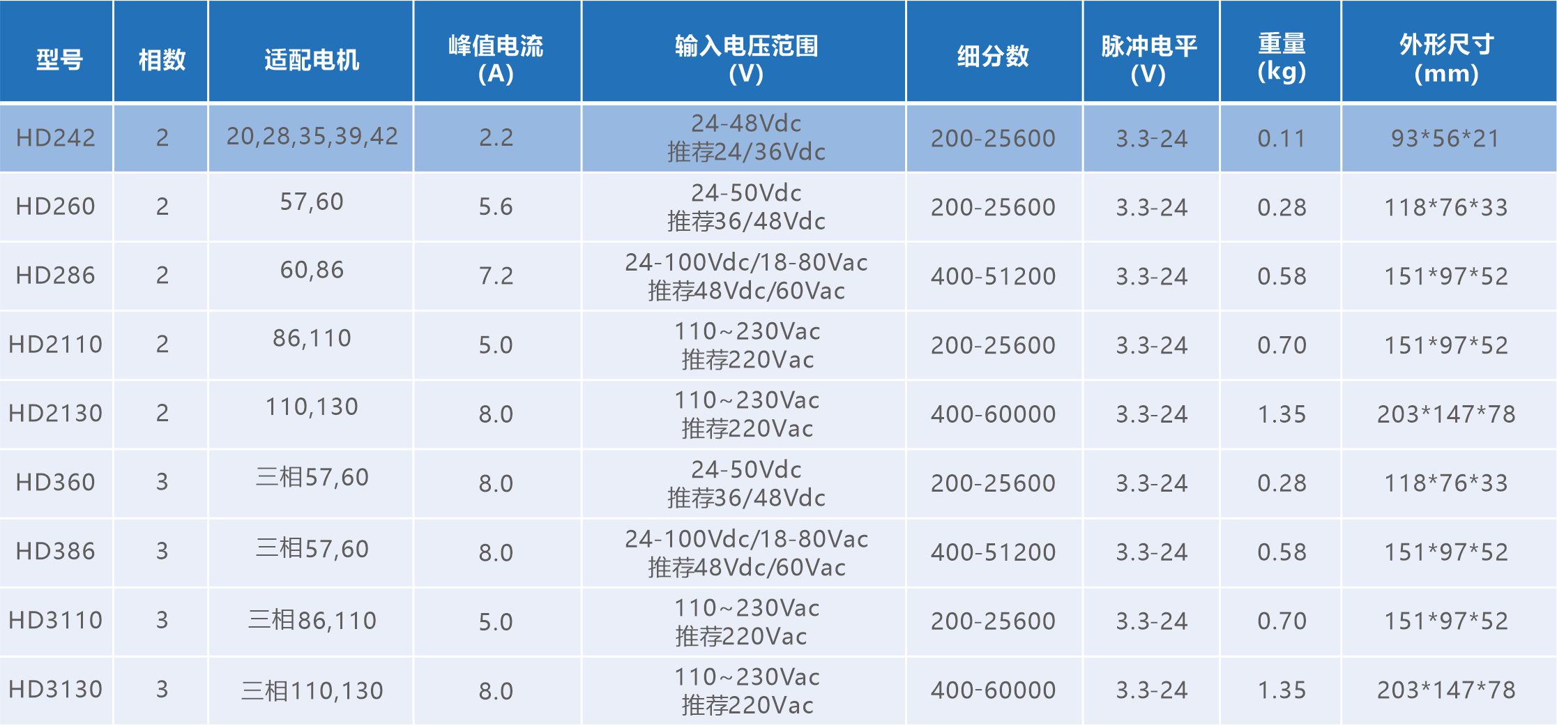HD242 開環(huán)步進(jìn)驅(qū)動器HD242步進(jìn)驅(qū)動器,基于32 位 DSP 處理芯片的平臺,采用內(nèi)部 PID 電流控制算法 設(shè)計,具有優(yōu)異的性能表現(xiàn)。內(nèi)置微細(xì)分技術(shù)使得 步進(jìn)驅(qū)動器具有低噪音、低振動、 低發(fā)熱和高速大力矩輸出的特點(diǎn),能夠很好的適應(yīng)于步進(jìn)電機(jī)的大部分運(yùn)用場合。 HD242可通過撥碼開關(guān)選擇運(yùn)行電流和細(xì)分,有 16 種細(xì)分、8 種電流選擇,具有過壓, 欠壓,過電流流保護(hù),其輸入輸出控制信號均采用光電隔離。