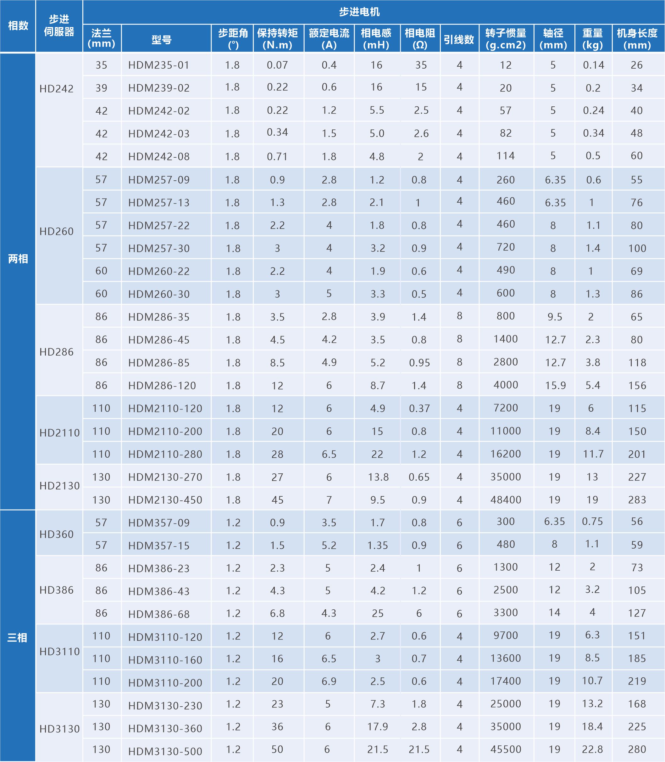 HDM260 開環(huán)步進電機HD系列步進,包括HD系列驅(qū)動器、HDM系列電機,是我司基于自動化行業(yè)的安全穩(wěn)定可靠、精準高效智能、高性價比、體積緊湊等多方面市場需求,針對性推出的單相、三相步進系統(tǒng),完美驅(qū)動從35mm到130mm機座的全系列的兩相、三相高品質(zhì)步進電機。 HD系列步進,具有更高可靠、更大力矩、更高精度、更低發(fā)熱、更平穩(wěn)性等特點,廣泛應用于電子、五金、木工、雕刻、玻璃、激光、噴繪、包裝、紡織服裝等自動化設備和生產(chǎn)線。