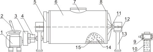 1-電機(jī) 2-離合器 3-減速器 4-摩擦離合器 5-大齒輪 6-筒身 7-加料口 8-端蓋9-旋塞閥 10-卸料管 11-主軸頭 12-軸承座 13-機(jī)座 14-襯板 15-研磨 研磨體運(yùn)動(dòng)狀態(tài)介紹