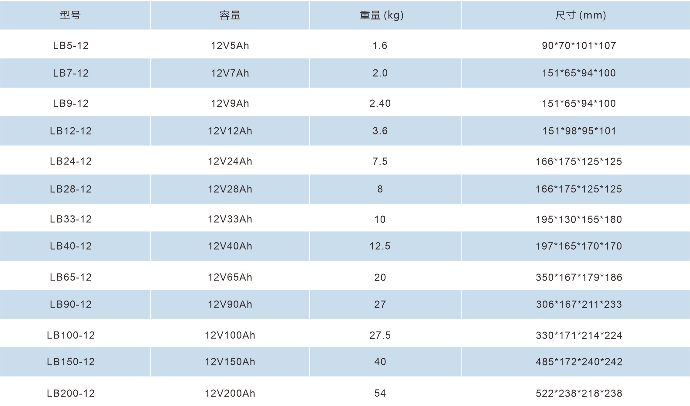 LB系列蓄電池12V(5AH-200AH)LB系列蓄電池12V(5AH-200AH)密封免維護防漏液,高質(zhì)量、高可靠性,內(nèi)阻小、輸出功率高 ;低自放電,長循環(huán)使用壽命,實體銅連接器可以任意方向使用