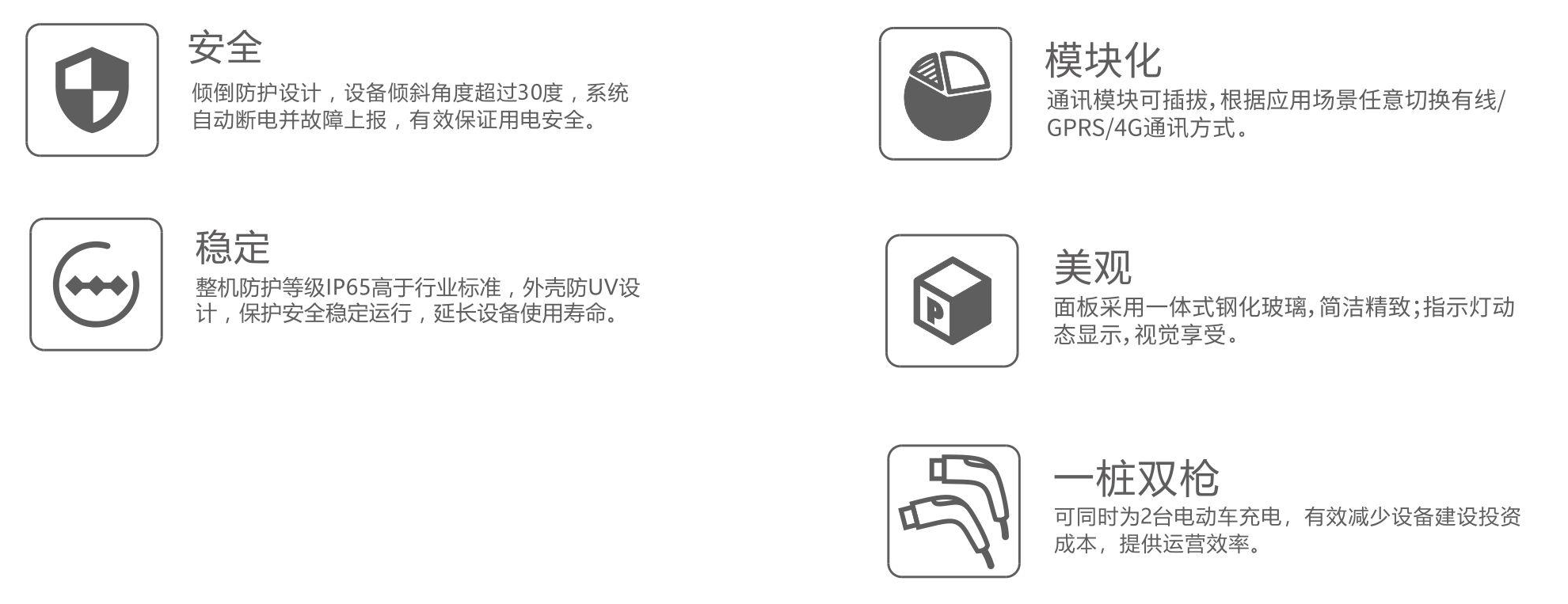 單相雙槍交流樁主要提供給地產(chǎn)物業(yè)或充電運營商等客戶,用于建設(shè)對外開放運營的充電站。充電樁集人機交互、充電控制、安全防護、計量計費、數(shù)據(jù)通信功能于一體,安裝方便、部署快捷、是用于停車場目的地充電的理想產(chǎn)品.